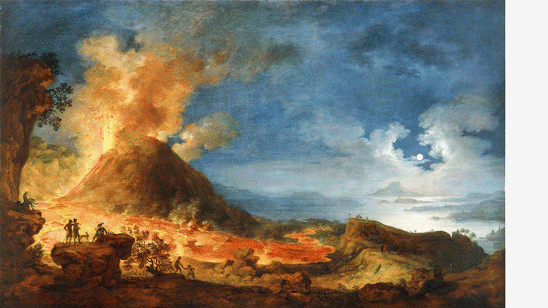 In order: Vesuvius Erupting Pierre Jacques Volaire 1776, Saint Bernardino’s Christ parade ca.1930 Canale(IT), Nuto Revelli's Il Mondo dei Vinti, 15th century painting of Halley's comet, Hermes Trismegistus, Day by Michelangelo ca. 1526-33,
