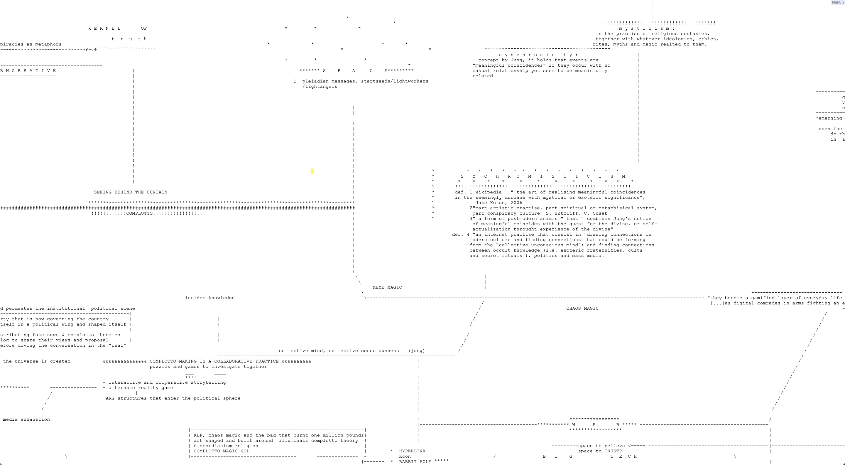 I started my research by analysing famous conspiracy theories by tracing a series of archetypes and elements that can be found in many of these stories simultaneously. Guided by this first exploration, I have been centering my research around the idea of the monomyth